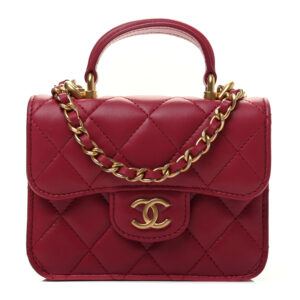 CHANEL Lambskin Quilted Top Handle Flap Coin Purse With Chain Dark Pink