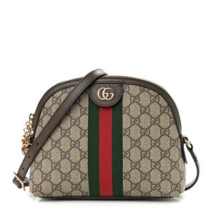 GUCCI GG Supreme Monogram Web Small Ophidia Dome Shoulder Bag Brown