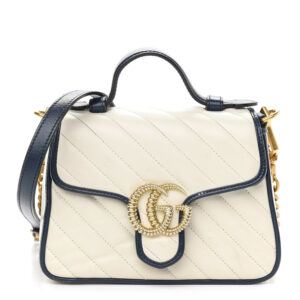 GUCCI Vintage Effect Calfskin Matelasse Diagonal Mini Torchon GG Marmont Top Handle Shoulder Bag Beige Blue