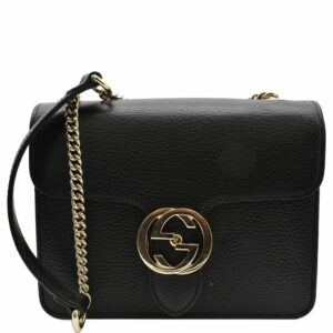 GUCCI Interlocking GG Leather Crossbody Bag Black 510304