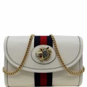 GUCCI Rajah Mini Leather Chain Shoulder Bag White 573797