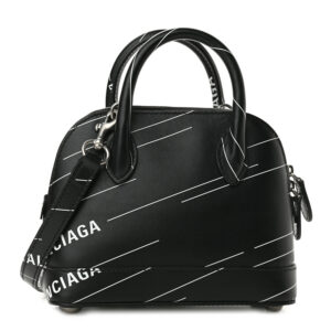 BALENCIAGA Calfskin Logo Print XXS Ville Top Handle Bag Black White