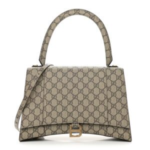 BALENCIAGA X GUCCI GG Supreme Monogram Medium Hourglass Top Handle Bag Beige Ebony