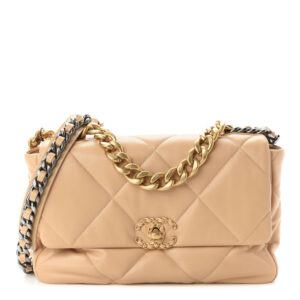CHANEL Lambskin Quilted Medium Chanel 19 Flap Beige