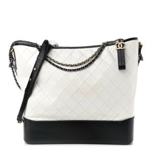 CHANEL Aged Calfskin Quilted Large Gabrielle Hobo White Black