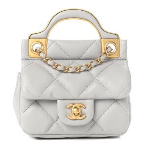 CHANEL Calfskin Quilted Lady Handle Clutch With Chain Grey