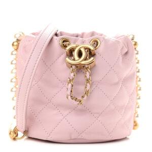 CHANEL Calfskin Quilted Pearl Mini About Pearls Drawstring Bucket Light Pink