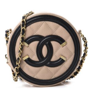 CHANEL Caviar Quilted Round Filigree Crossbody Beige Black