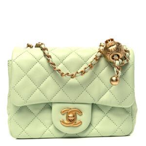 CHANEL Lambskin Quilted CC Pearl Crush Mini Flap Light Green