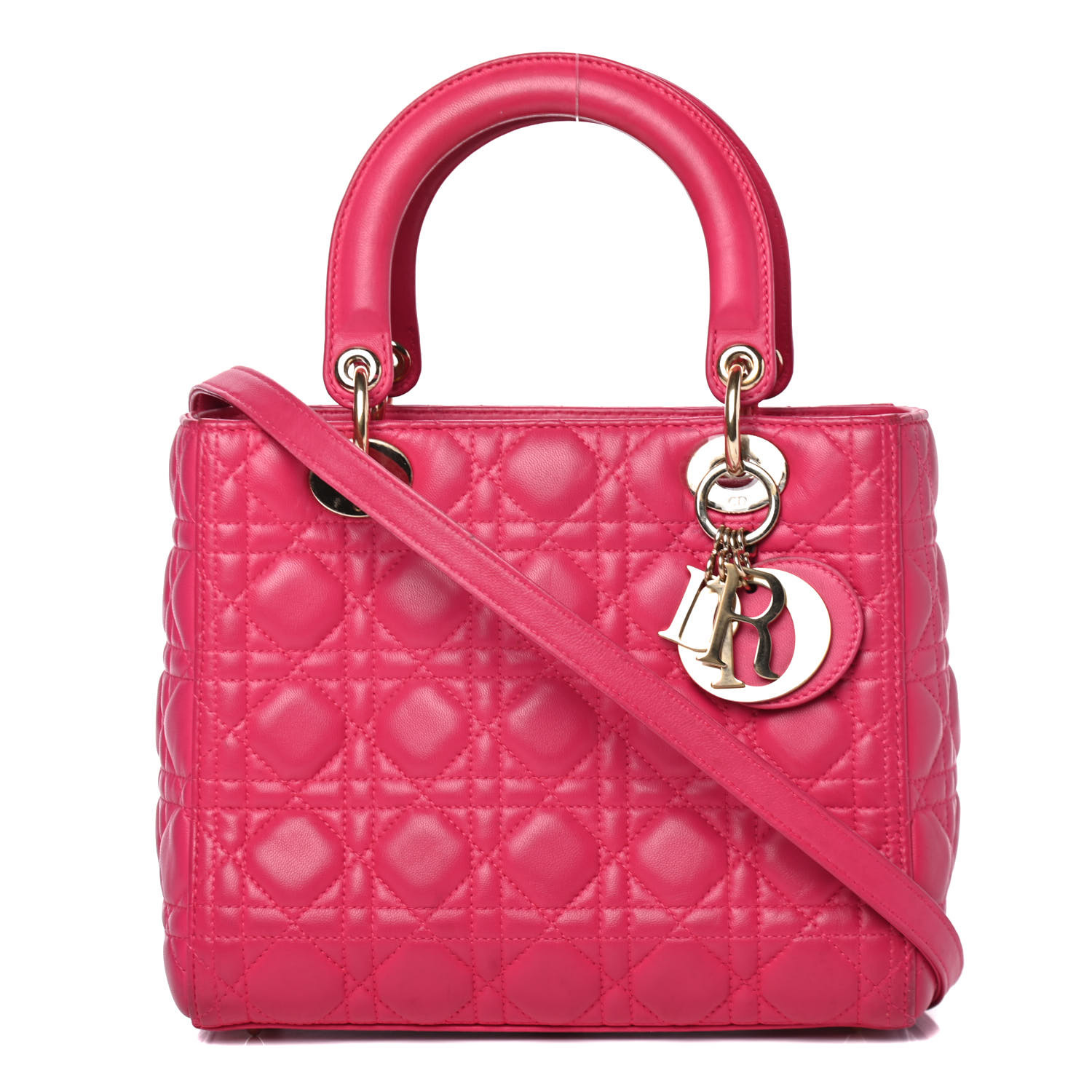 CHRISTIAN DIOR Lambskin Cannage Medium Lady Dior Pink