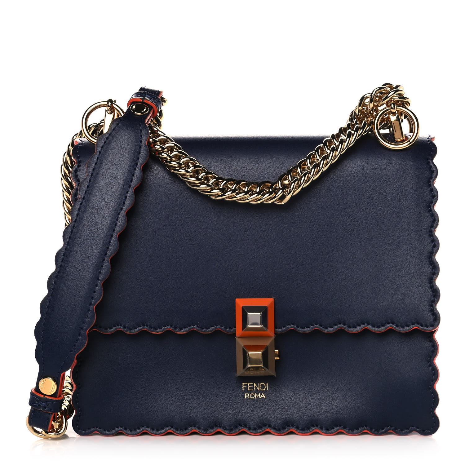 Be the first to review “FENDI Calfskin Scalloped Studded Small Kan I Shoulder Bag Blue”